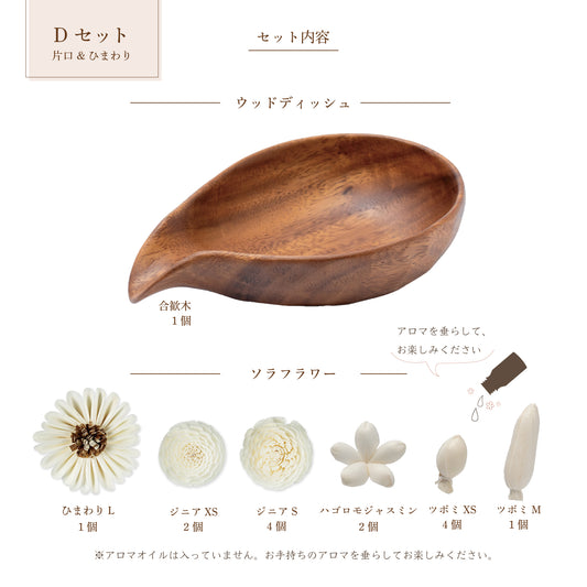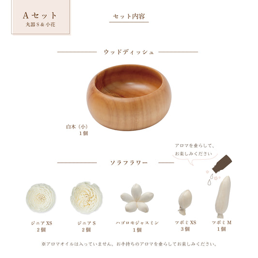<空の香 爽>ソラフラワーアロマディフューザー ディッシュのみ(アロマオイルなし) 丸型白木の器&小花ソラフラワーセット