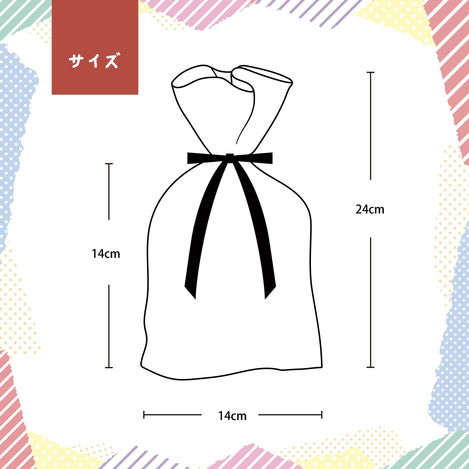 ・ラッピング袋サイズ:H24cm(リボンから下14cm)×W14cm